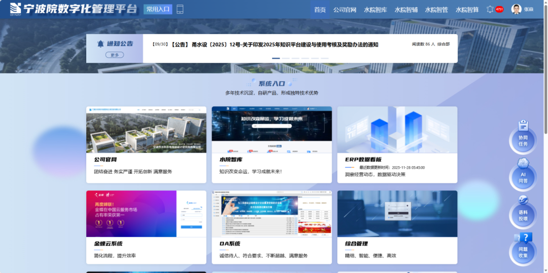 作為我院智慧水利研究院咨詢與解決方案部總監(jiān),張焱及其團(tuán)隊身處業(yè)務(wù)鏈條最前端,主導(dǎo)項(xiàng)目售前咨詢,精準(zhǔn)對接客戶需求,是我院在智慧水利領(lǐng)域的一線開拓者。從臺風(fēng)防御技術(shù)研發(fā)到省河湖庫數(shù)字化管理,從水利工程信息化設(shè)計到數(shù)智水院產(chǎn)品推廣,他始終緊貼政策前沿與業(yè)務(wù)一線,以專業(yè)為錨、以創(chuàng)新為帆,在江河湖海的治理藍(lán)圖上書寫智慧答卷。